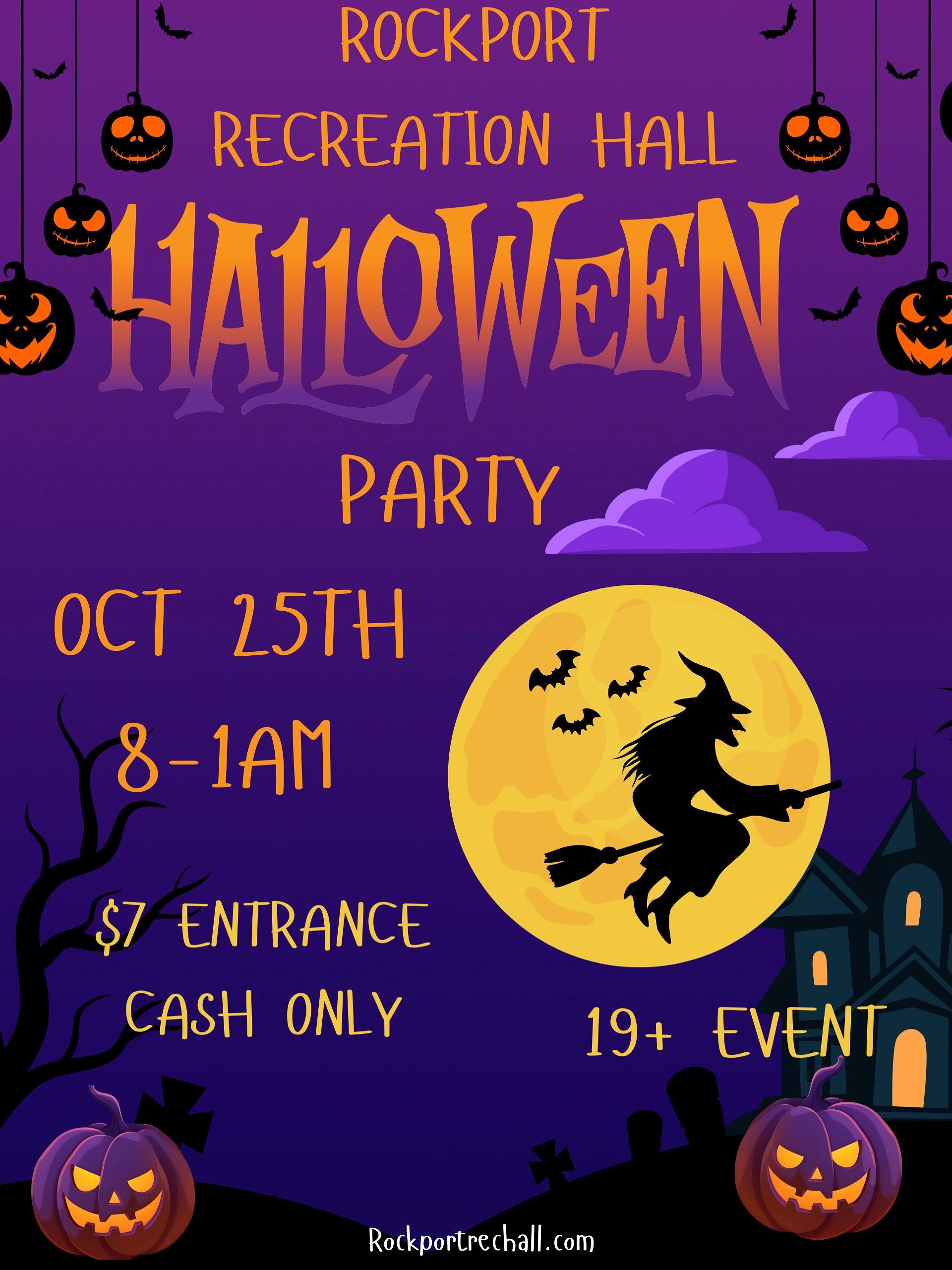 Saturday, Oct. 25th from 8-1 am, way past midnight! That’s how we party in Rockport!