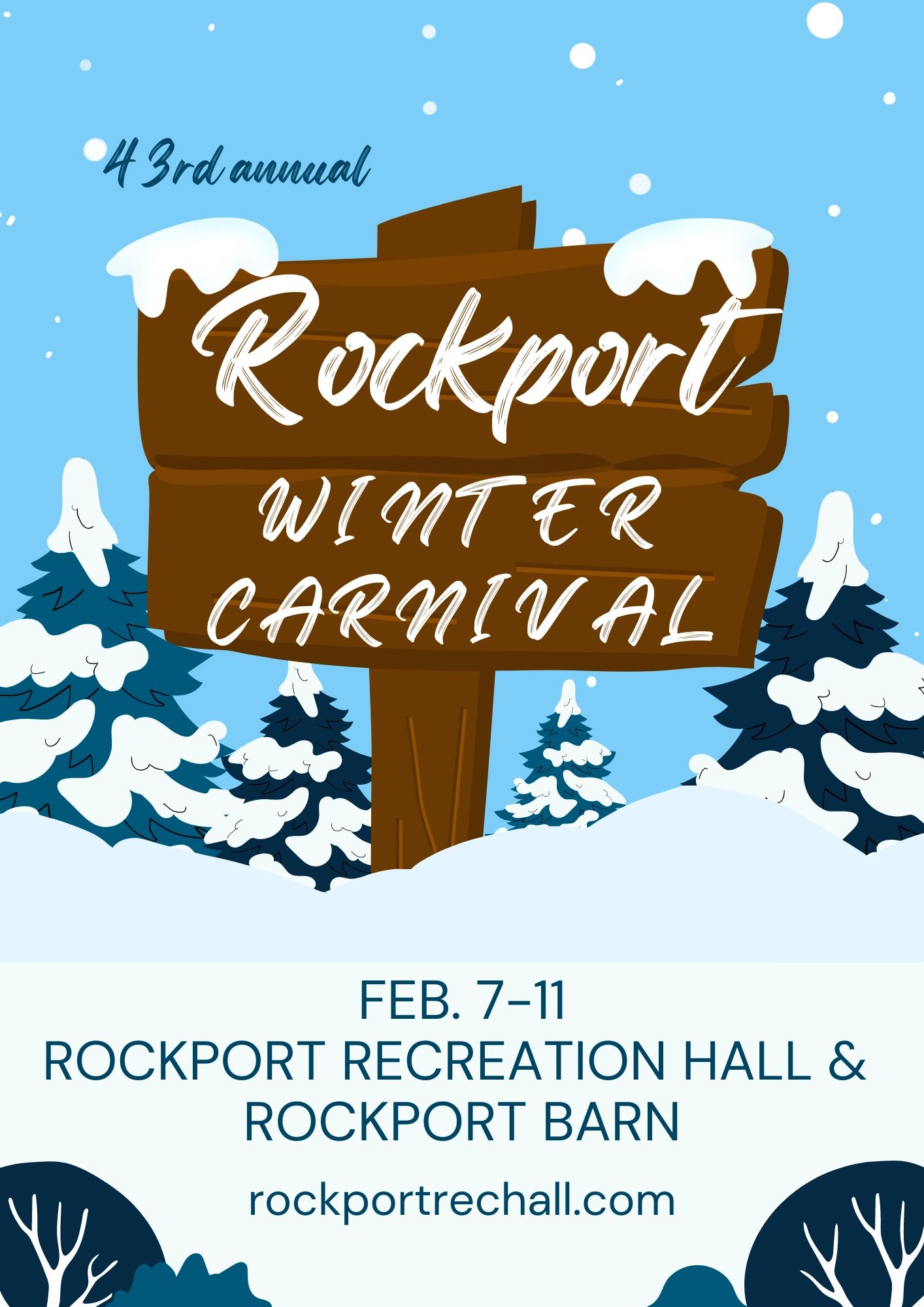 Join us for a fun filled week and weekend at the 44th annual Rockport WInter Carnival at the Rockport recreation HAll and the Rockport Barn.